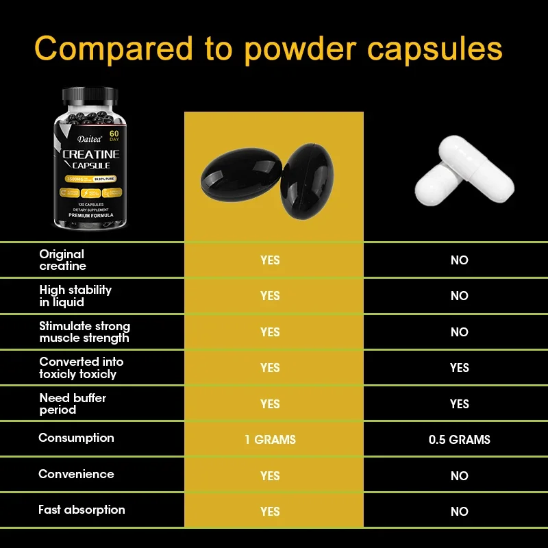Count on Daitea's Creatine Capsules, a 100% vegetarian, gluten-free, soy-free, and keto-friendly creatine monohydrate supplement.