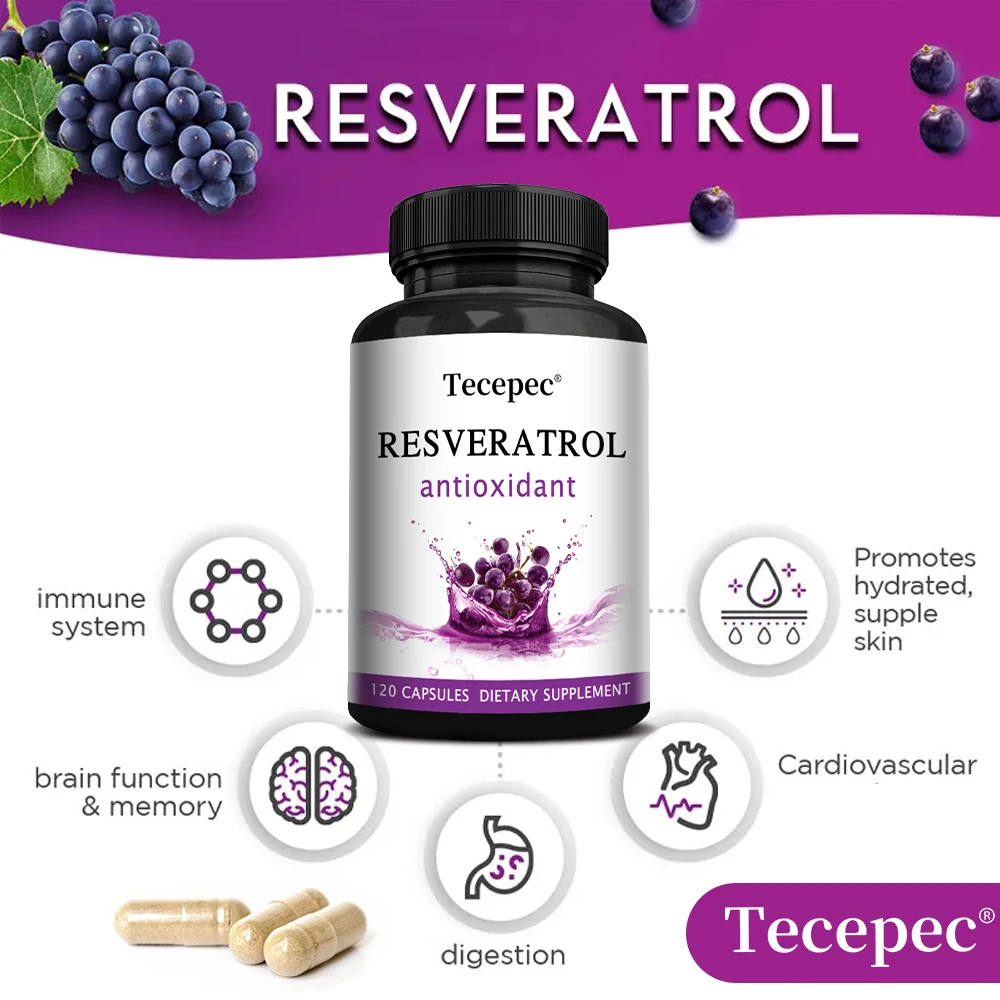 Tecepec RESVERATROL Antioxidant - Supports Healthy Immunity, Brain, Digestion and Cardiovascular Function, Promotes Smooth Skin in Pakistan